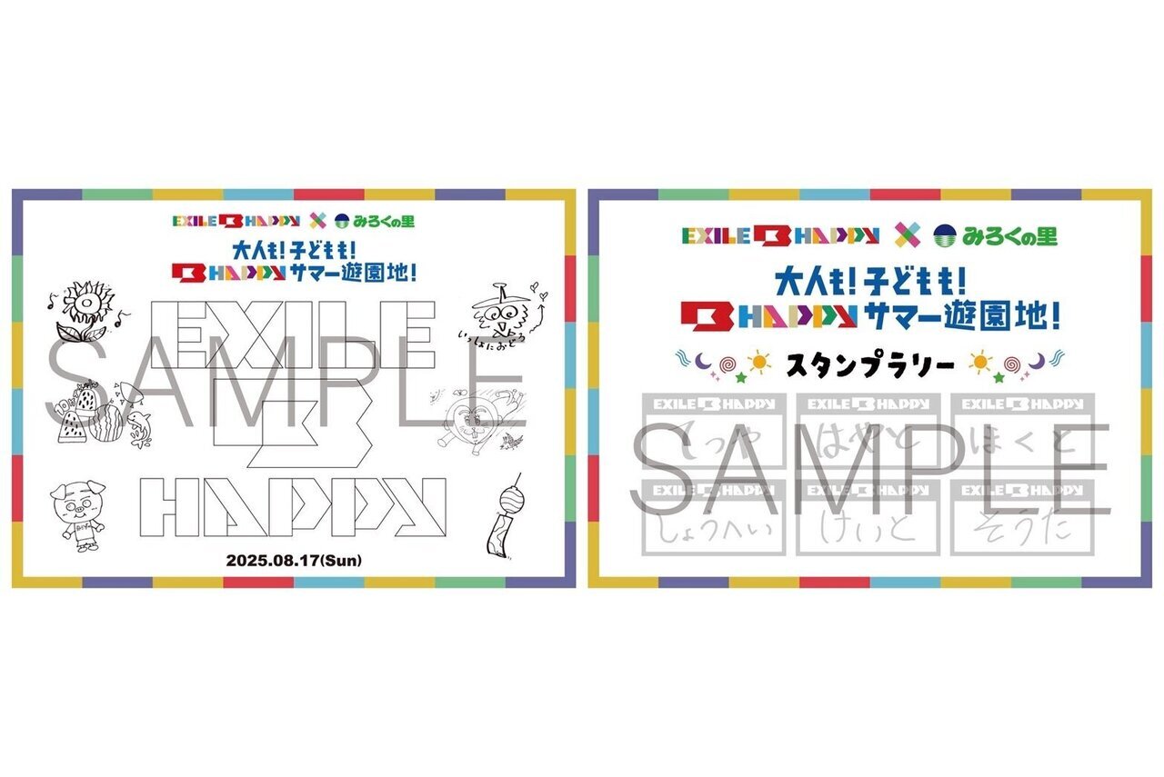 さらに、ご来園いただいた方、先着2,000名様にEXILE B HAPPYオリジナルスタンプラリー& ぬりえをプレゼント!