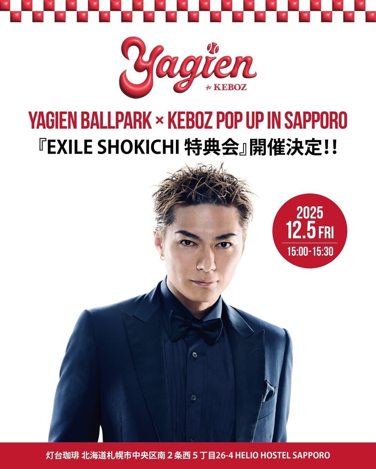本企画は、EXILE SHOKICHIがその場でYagien×KEBOZグッズまたは私物1点に直筆サインをお入れいたします。