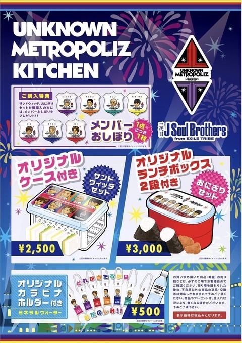※三代目J Soul Brothers LIVE TOUR 2017”UNKNOWN METROPOLIZ”東京公演(東京ドーム)では、UNKNOWN METROPOLIZ KITCHENの実施はありません。