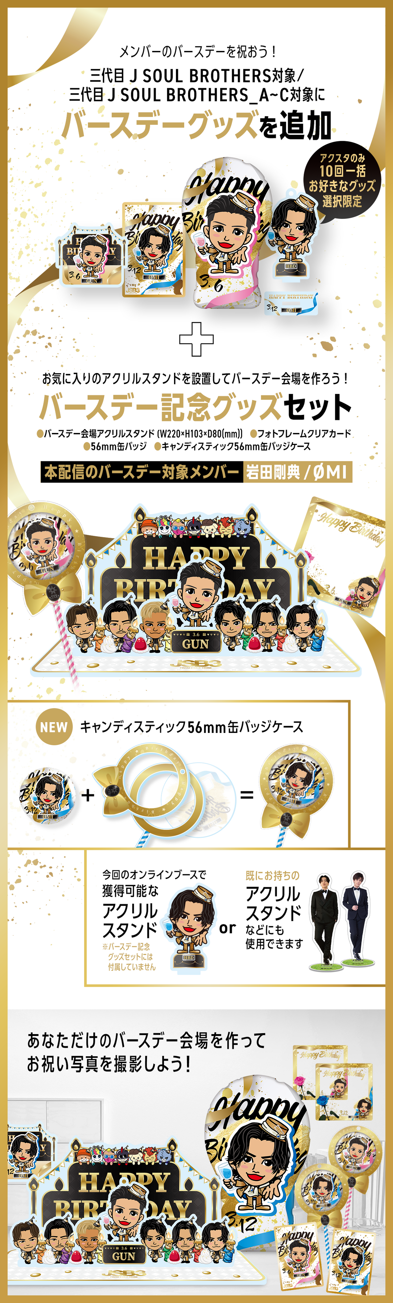 ・Birthday記念セットを含むバースデー関連のグッズの対象は、今回の配信では岩田剛典とØMIのみになります。