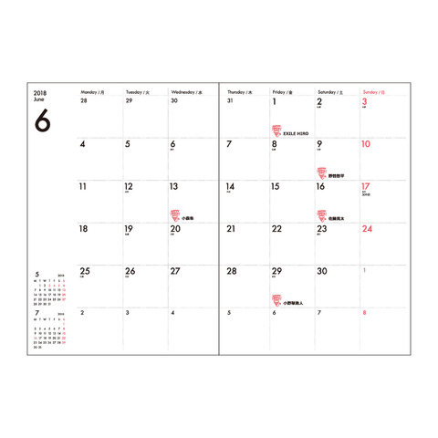 手帳の中身はマンスリータイプとウィークリータイプの両方が付いてとても便利。