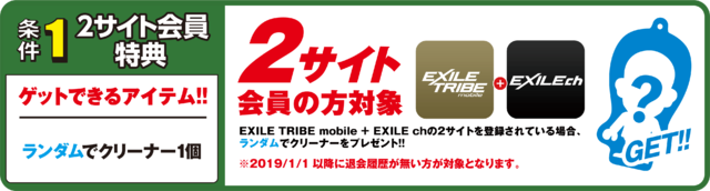 EXILE TRIBE mobile / EXILE chの2サイト会員の方対象でランダムクリーナーを1つプレゼント!!