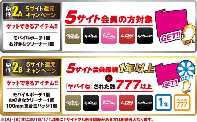 引換時の5サイト入会の状態に応じて、【A】または【B】のどちらかのグッズプレゼント!!