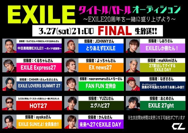 3/17(水)〜3/23(火)までCLライブキャストリレーでお届けした「EXILEタイトルバトルオーディション」の最終決戦、