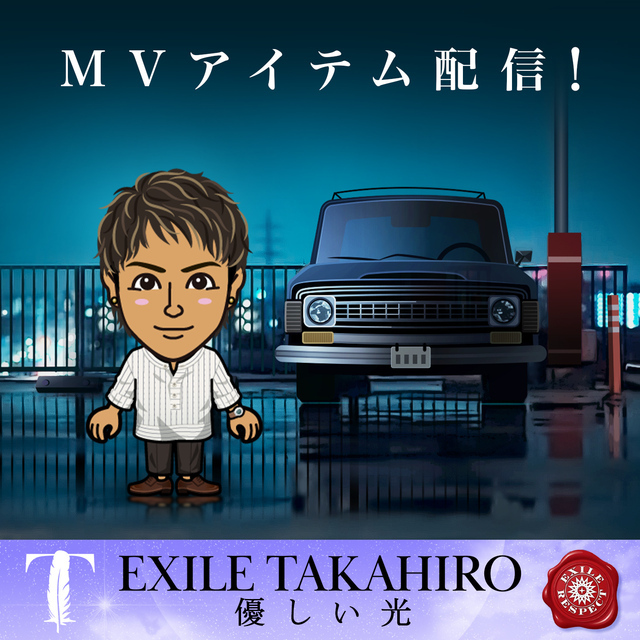 EXILE mobile マイページ EXILE TAKAHIRO 2021.09.22 ★EXILE mobileマイページ★EXILE TAKAHIRO「優しい光」MVアイテム配信!! EXILE mobileマイページでは、EXILE TAKAHIRO「優しい光」のMVアイテムを配信します!! ぜひMVアイテムをGETして、着せ替えを楽しみましょう♪ ※「優しい光」MVアイテムは、EXILE TAKAHIROのアバターのみ着用可能です。