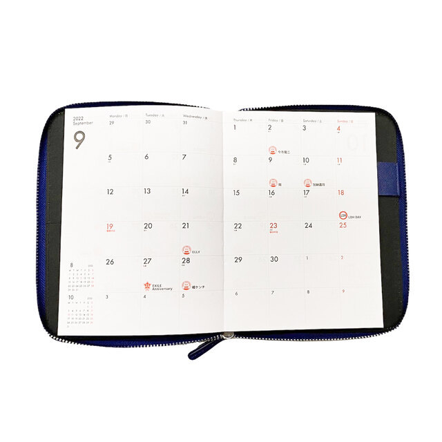EXILE TRIBE LDH 2021.10.12 EXILE TRIBE 2022 スケジュール帳発売決定!! 2022年のEXILE TRIBE スケジュール帳が発売決定!! 今年は合皮のネイビーカラーに全面ファスナータイプ☆ さらに、ライブやテレビ出演のスケジュールを楽しく管理できるデコレーションシール付き!! スケジュール帳と一緒に、EXILE TRIBEメンバーの誕生日やライブを楽しんでください♪ 【発売日】 EXILE TRIBE STATION TOKYO/OSAKA、EXILE TRIBE STATION ONLINE STOREにて 10/14(木)12:00より販売スタート!! 詳しくはこちら