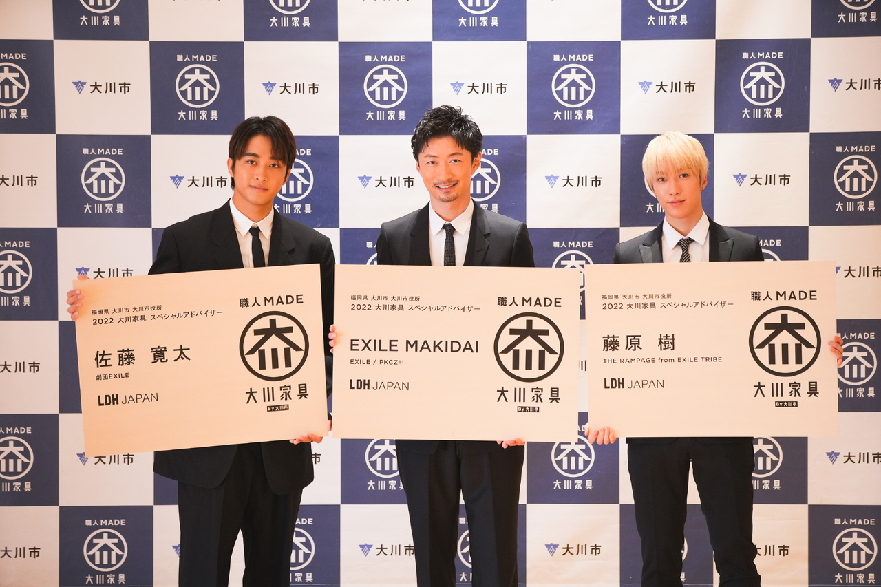 福岡県大川市は、大川家具の更なるブランド強化を目的に、昨年度より、大川家具の魅力を発信する「大川家具スペシャルアドバイザー」の役職を設け、昨年度就任した黒木啓司のバトンを受け継ぎ、2022年度はグループを超えてタッグを組みTeam LDHとして、EXILE MAKIDAIをリーダーに福岡出身の佐藤寛太と藤原樹の3名が活動します。