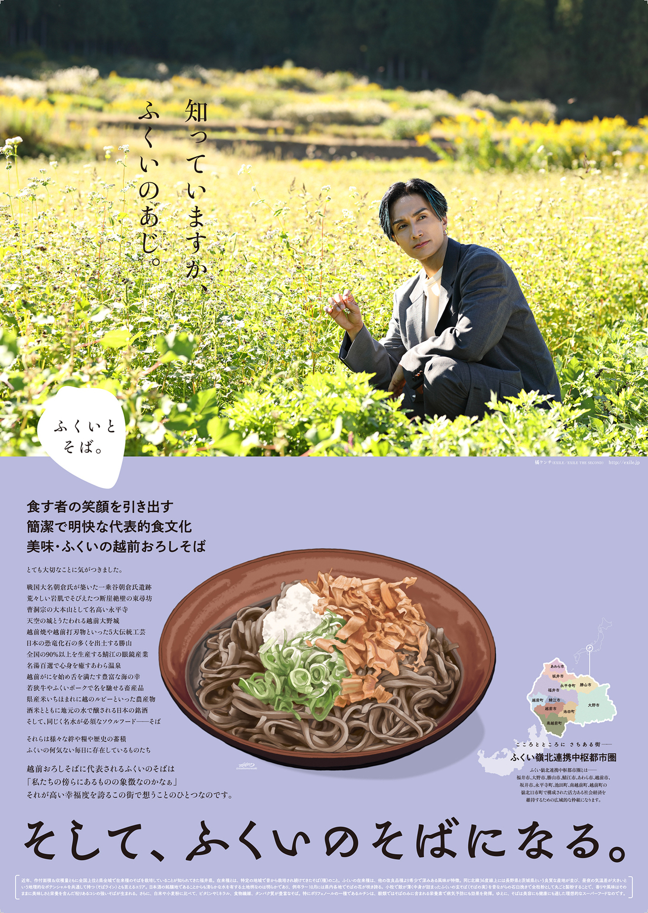これまで個人では福井市食のPR大使として食フェアのプロデュースや雑誌及び番組の企画の他、LDH JAPANとしても『ふくいとそば。』の編集や林業動画『FORESTRY きといきる。』の制作など様々なコラボを実現してきた福井市さんと地域活性化連携協定を結ぶことができて嬉しく思っています。