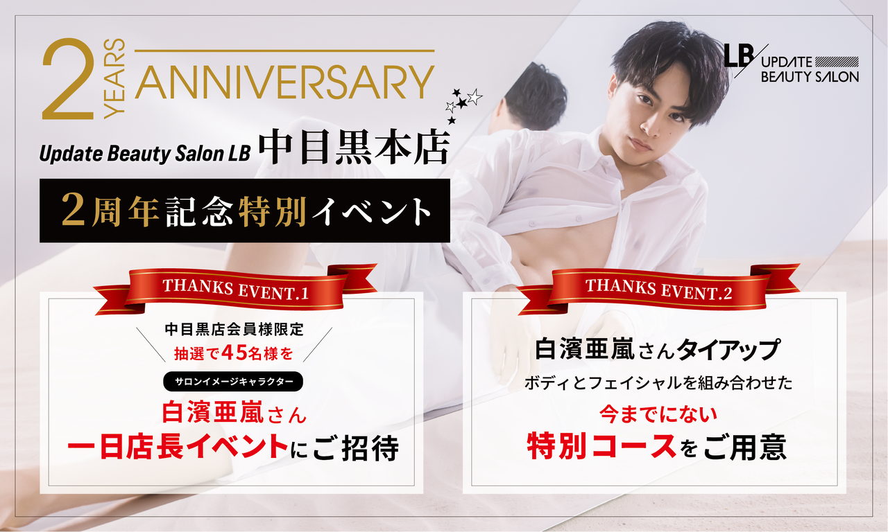 Update Beauty Salon LB 中目黒本店の2周年を記念した特別イベントにて、『白濱亜嵐 一日店長イベント』の開催が決定しました!