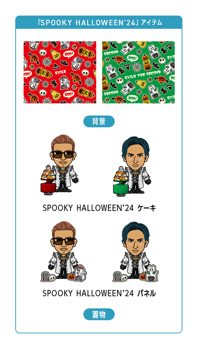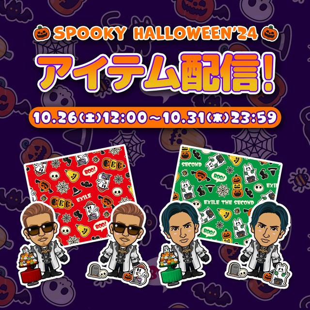 EXILE mobile マイページ 2024.10.26 【EXILE mobileマイページ】SPOOKY HALLOWEEN'24アイテム配信! EXILE mobileマイページでは、 SPOOKY HALLOWEEN'24の アイテムを配信します!! ぜひアイテムをGETして、着せ替えを楽しみましょう!