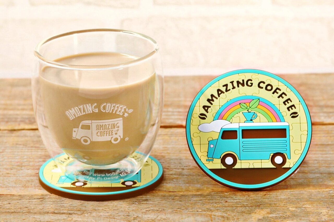 日々のコーヒータイムを彩る、「AMAZING COFFEE」10周年記念デザインのラバーコースターです。