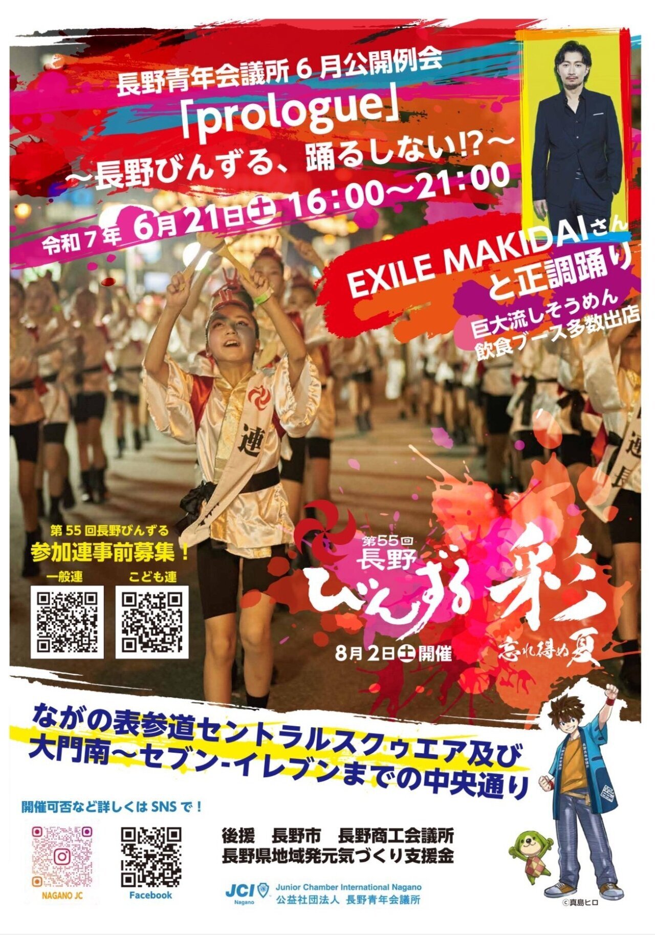 6/21(土)にながの表参道セントラルスクゥエア、問御所町交差点〜大門信号機までの中央通りにて開催される『「prologue」〜長野びんずる、踊るしない!?〜』にEXILE MAKIDAIが出演します!!