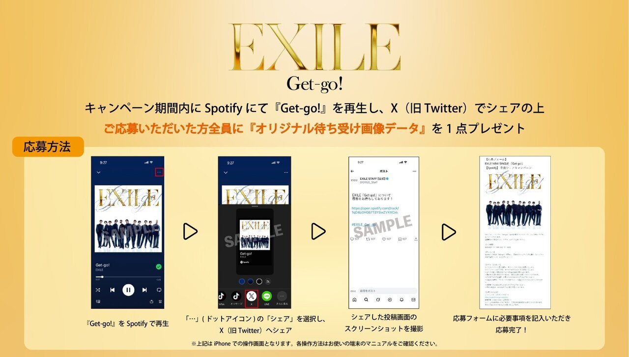 キャンペーン期間内にSpotifyにて『Get-go!』を再生し、 X(旧Twitter)でシェアの上、ご応募いただいた方全員に『オリジナル待ち受け画像データ』を1点プレゼント。