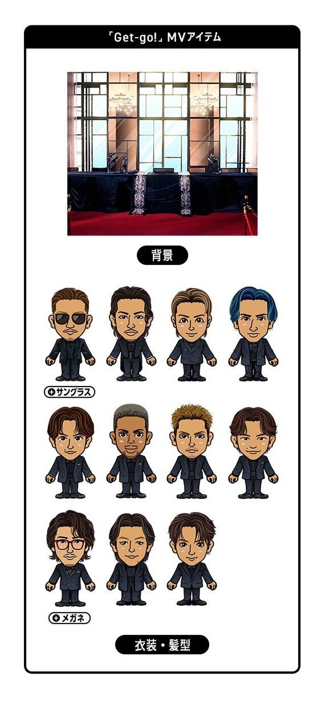 ※「Get-go!」MVアイテムは、EXILEのアバターのみ着用可能です。