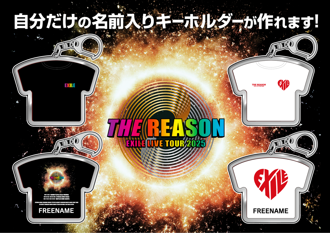 11/6(木)より、EXILE TRIBE STATION TOKYOにて、名入れができるキーホルダー「EXILE TRIBE CUSTOM KEYHOLDER」の『EXILE LIVE TOUR 2025 "THE REASON"』デザインが販売決定!!