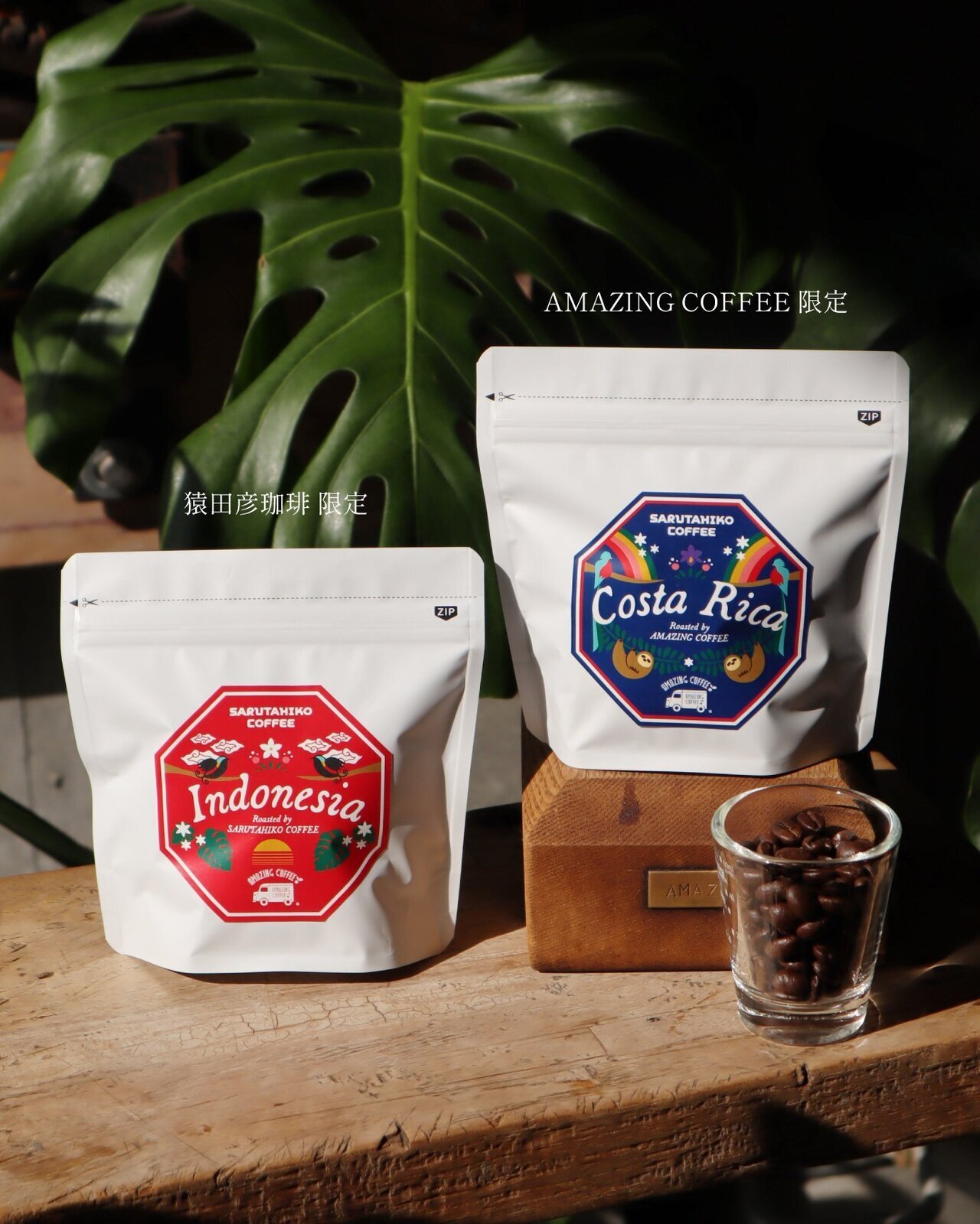 AMAZING COFFEEと猿田彦珈琲を繋ぐ、思い⼊れのある2つの産地「インドネシア」と「コスタリカ」のシングルオリジンをご用意しました。