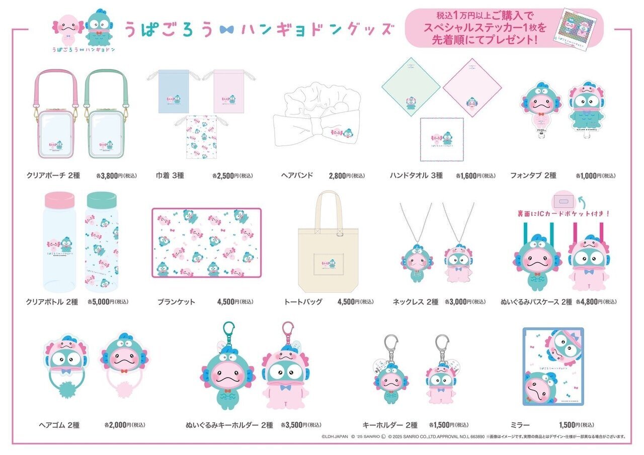 きっかけは、とあるキャス配信での⾔い間違いでしたが、その⽇からハンギョドンが⼤好きになり、ファンのみんなも、うぱごろうとハンギョドンのグッズをセットでつけてライブやイベントに来てくれるようになり、⼀緒に応援してくれるようになりました。