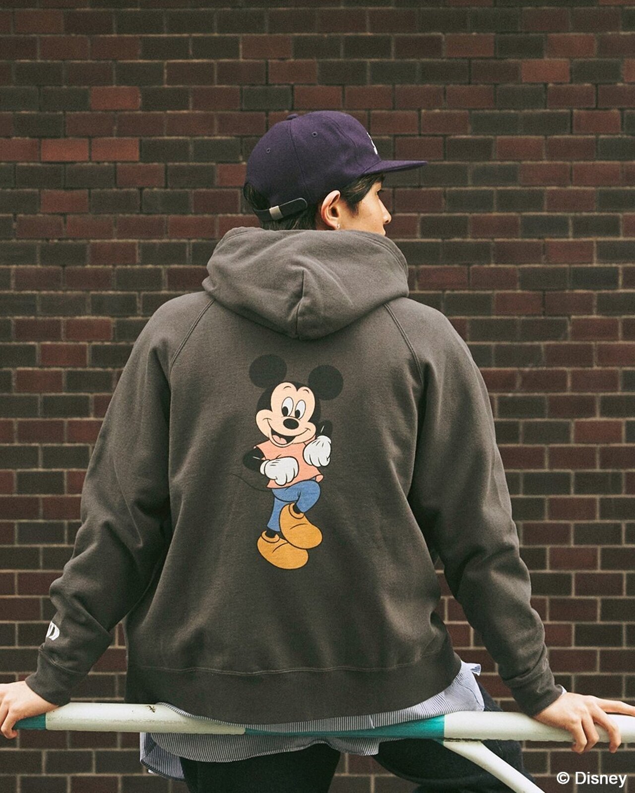 さがら刺繍で表現したミッキーマウスが目を引くクルーネックスウェット、さりげない刺繍がポイントの半袖Tシャツの全3型を展開。