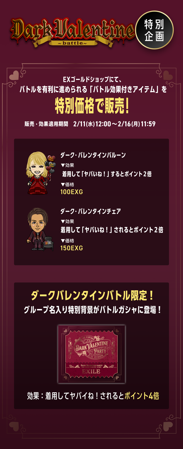 EXILE mobileマイページでは、ダーク・バレンタインバトルを開催します!!