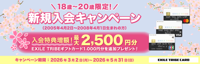 LDHオフィシャルクレジットカード"EXILE TRIBE CARD"では、新規入会キャンペーンを実施中です!