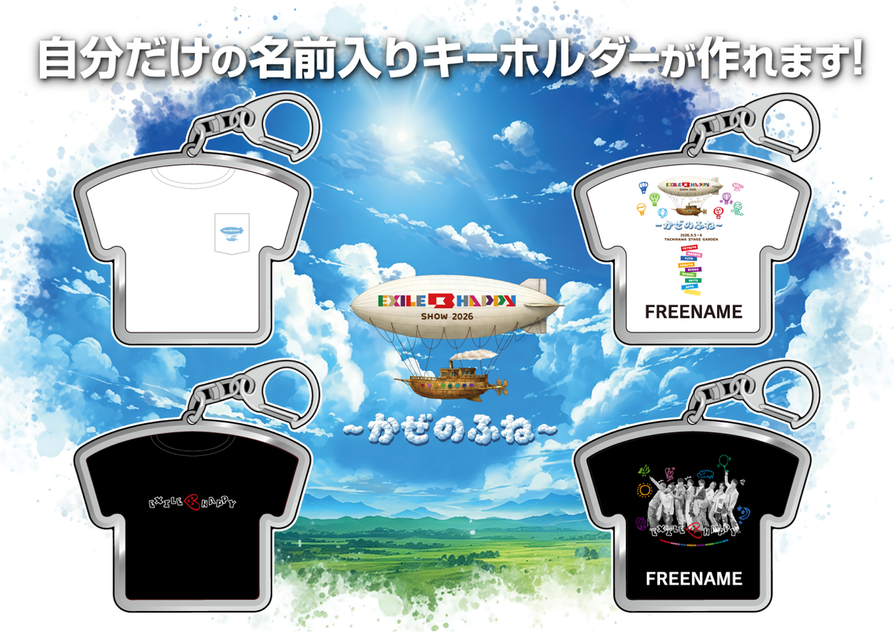 さらに4/24(金)より、EXILE TRIBE STATION TOKYOにて、名入れができるキーホルダー「EXILE TRIBE CUSTOM KEYHOLDER」の『EXILE B HAPPY SHOW 2026 〜かぜのふね〜』デザインも販売決定!!
