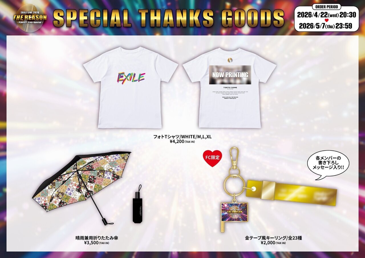 『EXILE LIVE 2026 "THE REASON" 〜PERFECT YEAR Special〜』公演を記念した、Special Thanks Goodsの受注販売が決定!!